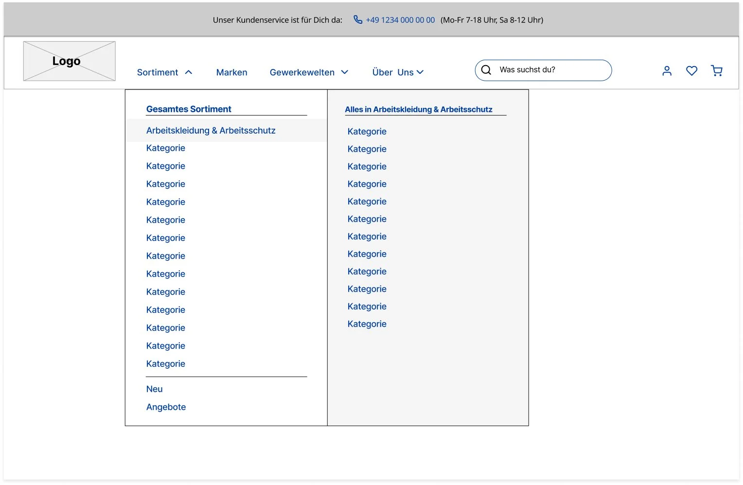 I was responsible for an analysis of the status quo of the shop as well as competitors, the identification of the most important areas of improvement, conception of solutions (on wireframe basis), hand-off to UI-Design, review of UI and final hand-off to our client.